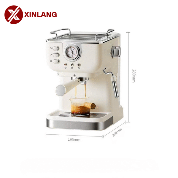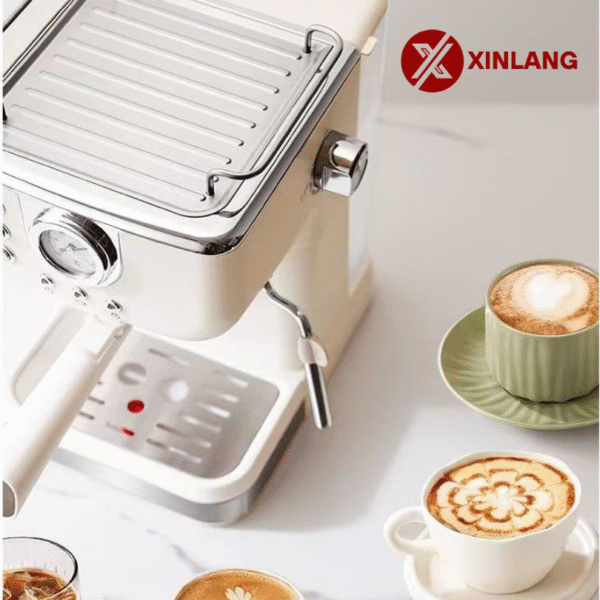 The XLCR09 is an Italian semi-automatic espresso machine with steam and heating functions. It features a 1.2–1.8L water tank, 3–5 cup capacity, and pump pressure system. Built with stainless steel and PP, and styled with Ins wind design, it combines durability with aesthetics. Compact and efficient, it is ideal for home or small office use.